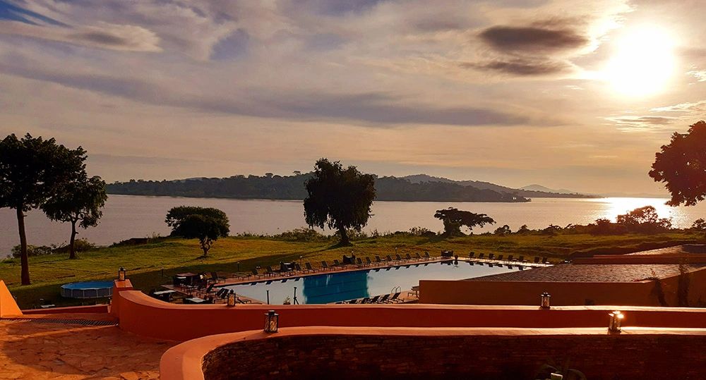 is a hotel on the shores of Lake Victoria, 30 minutes from Entebbe Airport.
